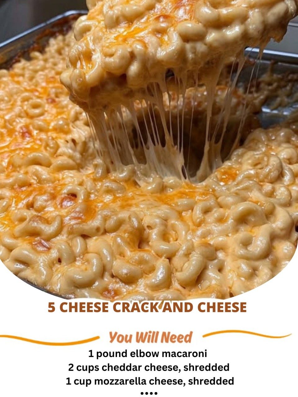 5 Cheese Crack & Cheese (sometimes called Five-Cheese Baked Mac and Cheese) is ultra-creamy, outrageously cheesy, and totally addictive — hence the “crack”! It’s comfort food turned up to 100 — golden, bubbling, and loaded with layers of rich cheese flavor.Here’s the ultimate version 👇