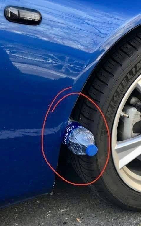About the plastic bottle on her tire: while it’s scary, there are a few possibilities to consider, and most of them are practical rather than supernatural: