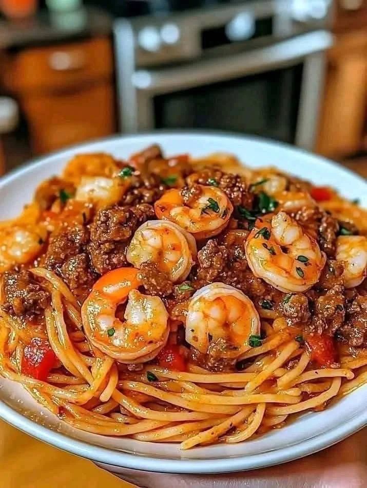 Cajun Cream Beef and Shrimp Pasta