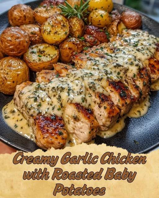 Creamy Garlic Chicken with Roasted Baby Potatoes