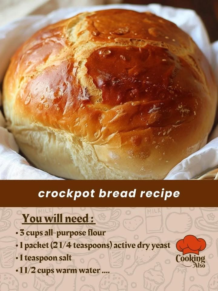Absolutely! 🥖 Here’s a super easy Crockpot Bread recipe — soft, fluffy inside with a lightly crisp crust. Perfect when you don’t want to heat up your oven!