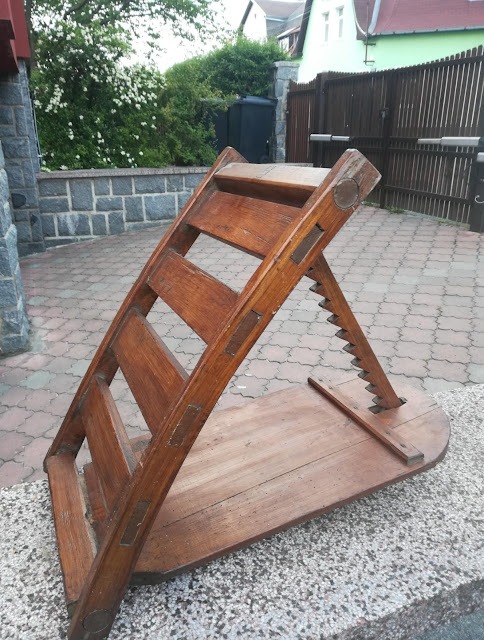 This is an interesting vintage wooden device! It looks like a traditional adjustable wooden book or music stand.