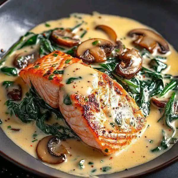 Garlic Butter Salmon with Spinach & Mushrooms
