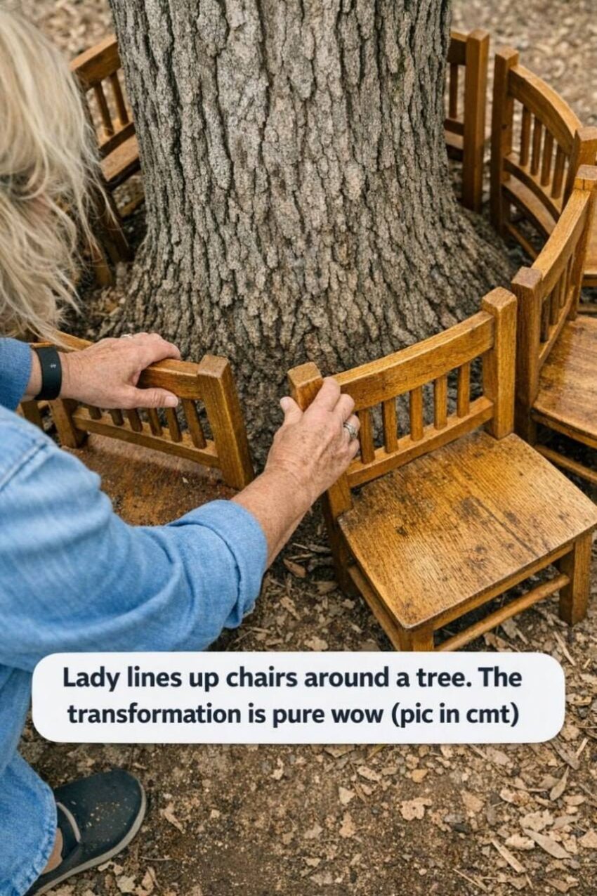 When someone lines up chairs around a tree, it’s often about creating a natural, cozy seating area. The wow factor comes from arrangement, symmetry, and context rather than expensive furniture.
