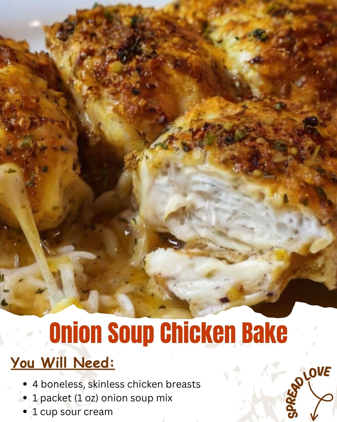 Pour the onion soup mixture evenly over the chicken, making sure each piece is well coated.