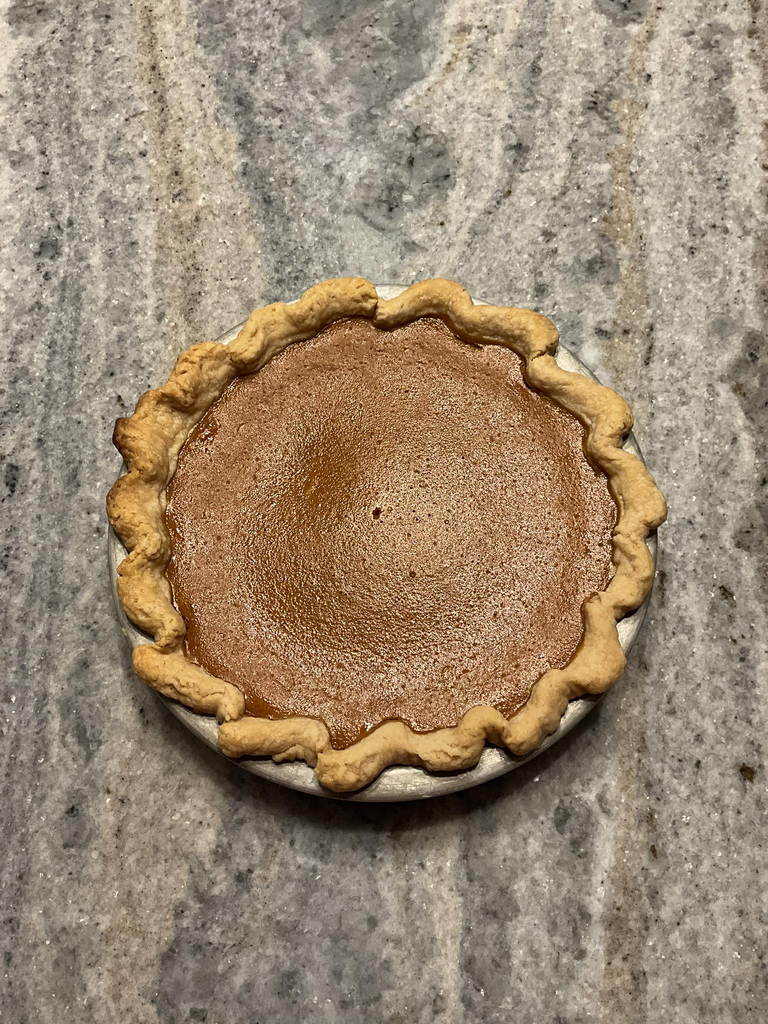 Shield the pie crust edges with foil or a pie shield if they brown too quickly.