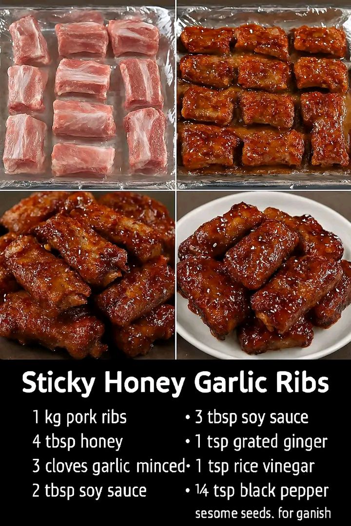 Ohhh yes 😍 — Sticky Honey Garlic Ribs — tender, juicy, fall-off-the-bone ribs coated in a glossy, sweet, garlicky glaze that caramelizes beautifully. This dish hits every flavor note: salty, sweet, garlicky, and a little smoky. Perfect for dinner or game day.Here’s a foolproof, finger-licking recipe 👇