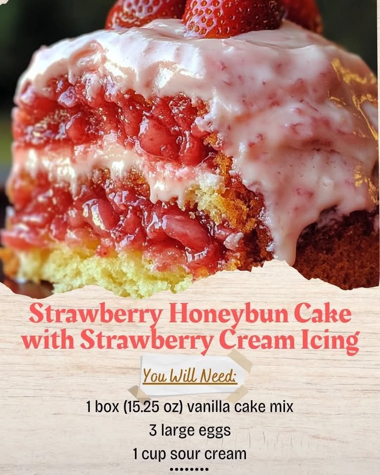 Here’s a moist and flavorful Strawberry Honeybun Cake with Strawberry Glaze — a fruity twist on the classic honeybun cake, combining the sweetness of strawberries with warm vanilla and cinnamon notes:
