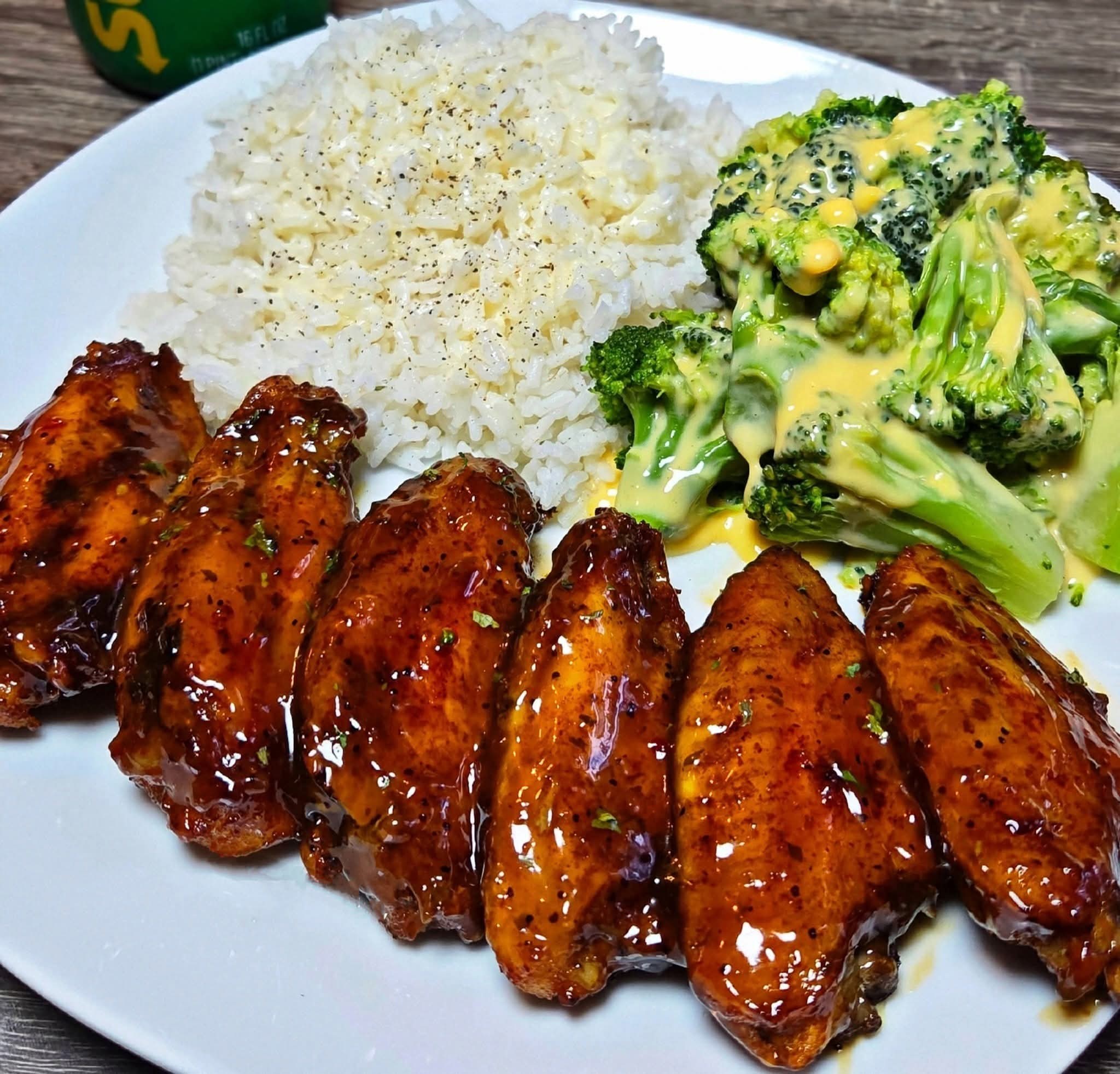 🍗🍚🥦 Teriyaki Chicken Wings with Rice & Broccoli in Cheese Sauce