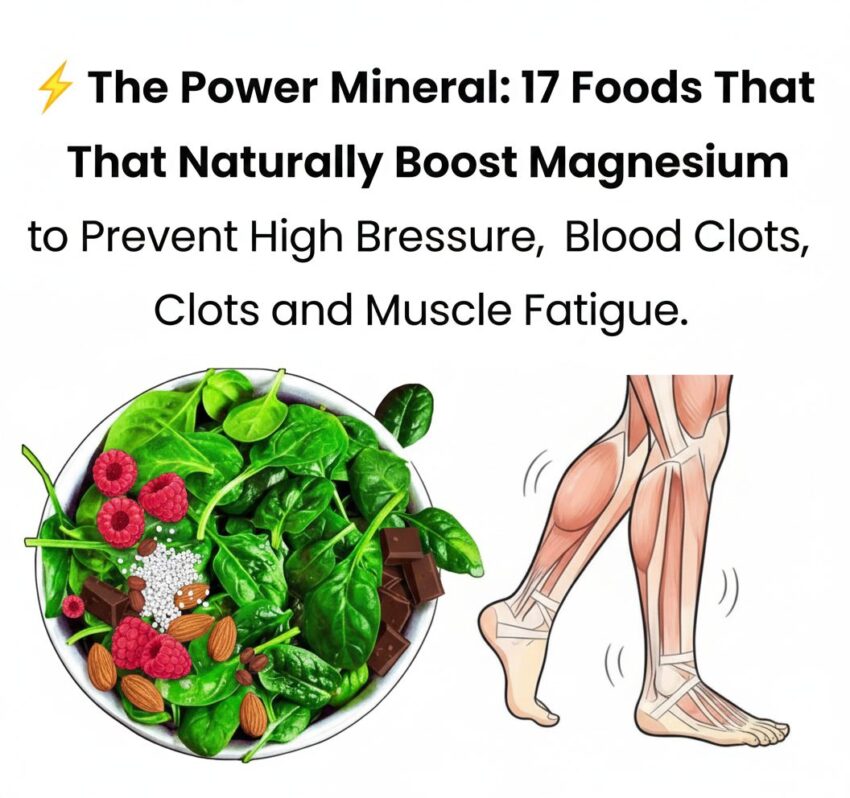 Absolutely! Magnesium is a vital mineral that helps regulate blood pressure, prevent blood clots, support muscle and nerve function, and keep your heart and bones healthy. Many people don’t get enough, but you can boost it naturally through foods. Here’s a list of 17 magnesium-rich foods and why they’re great for your body: